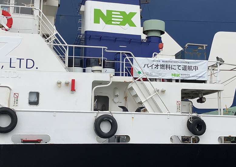 NX Shoji Co., Ltd. began trial operations using a fuel mixture of heavy oil A and biofuel ("B24") on the company's own dedicated fueling vessel, the Aikomaru, in February 2024. In April 2025, the company signed the Basic Agreement on the Demonstration Project for the Supply of Decarbonized Fuel to Ships at the Port of Kawasaki with the City of Kawasaki and Kanematsu Petroleum Corporation. This agreement advances decarbonization and carbon neutrality efforts at the port. NX Shoji obtained permission from the City of Kawasaki to use the pier and establish a proprietary biofuel supply system, strengthening the supply capabilities of the company.